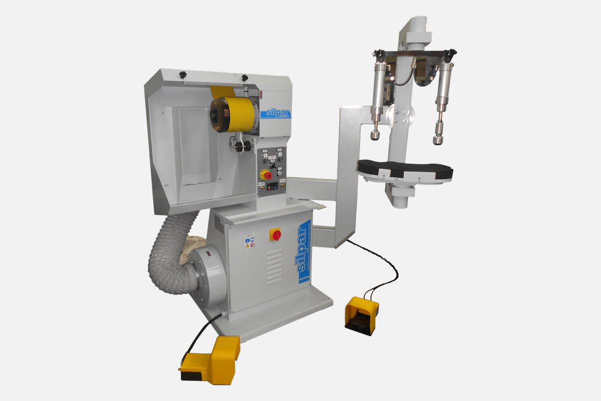 Questa macchina è stata studiata per poter, con un solo operatore, effettuare due operazioni, la marcatura della suola scatolata e la cardatura del bordo tomaia.