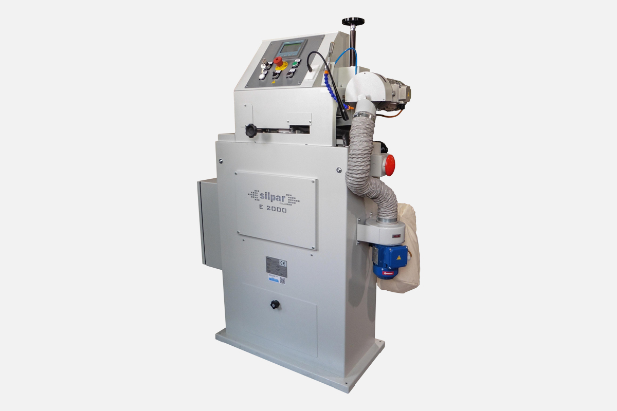 The nachine mod. E 2000 is used to sherpen tools made of tungsten carbide, having a maximum diameter of 120 mm., and a maximum lenght of 120 mm and a quality of endless teeth.