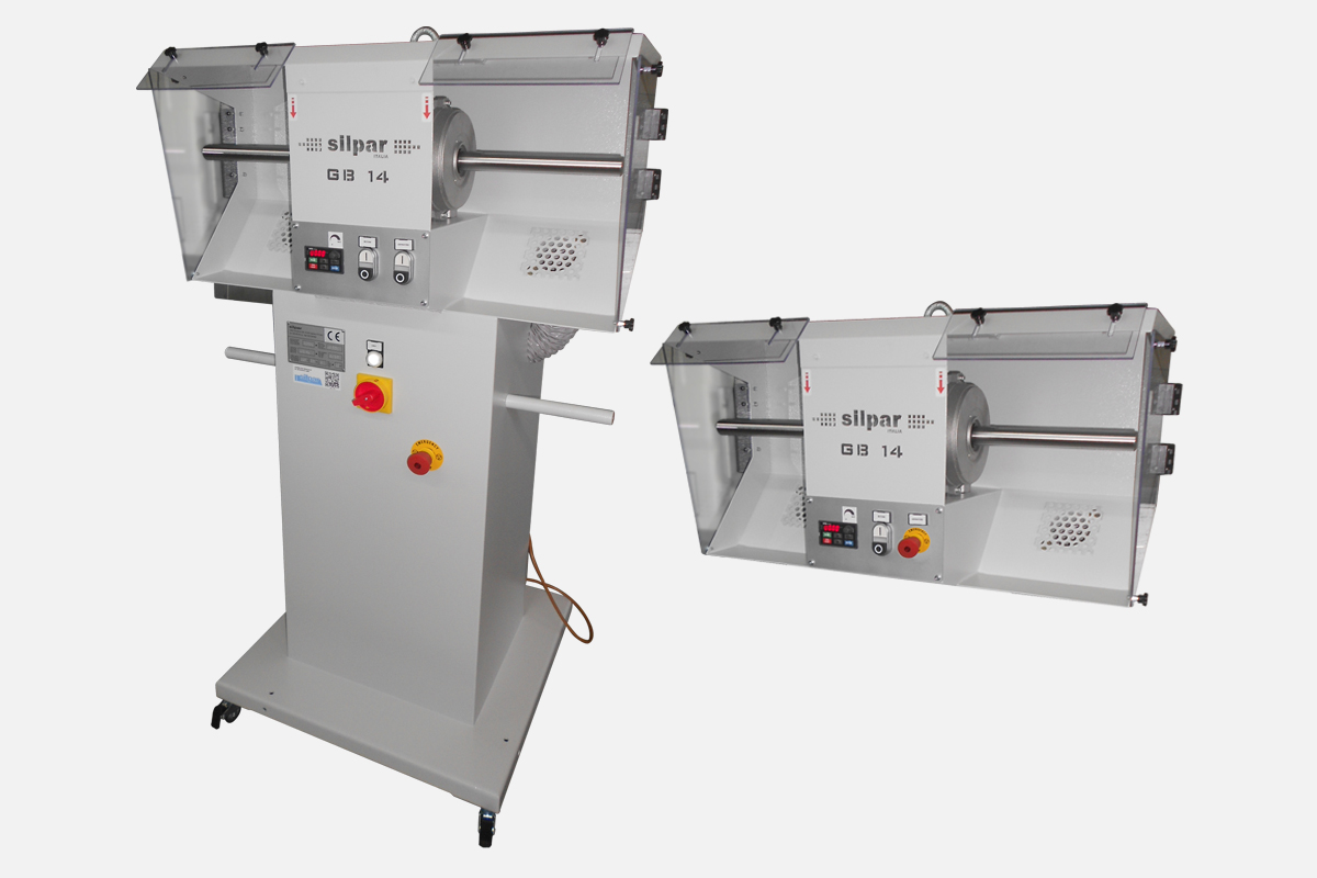 Spazzolatrice/cardatrice da banco per la cardatura e lucidatura di piccoli pezzi di pelletteria.